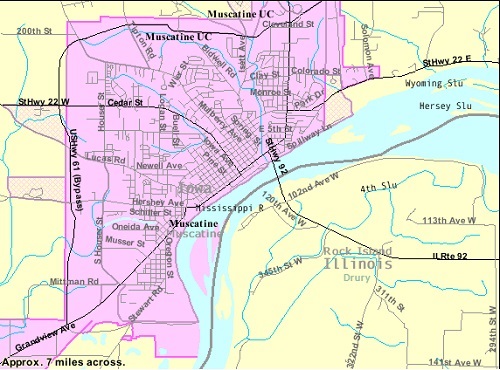 Transport Muscatine is located along two designated routes of Iowa’s Commercial-Industrial Network; Highway 61 serves as a major agricultural-industry route to the south from Burlington to Muscatine, where it becomes a heavy-industrial and major commuter route to the northeast between Muscatine and Davenport; highway 61 serves as a shortcut for traffic from northeastern Missouri and southeastern Iowa to the Quad Cities, Chicago, and points beyond. Iowa 92 provides access to the Avenue of the Saints to the west and western Illinois via the Norbert Beckey Bridge to the east.
