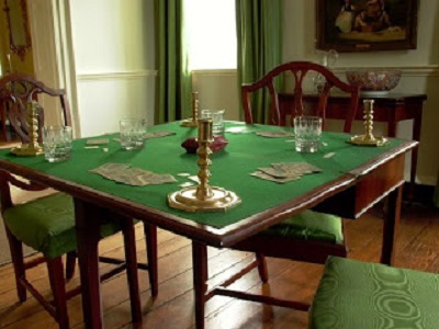 Decorative Arts the museum proudly showcases the finest collection of colonial furniture in Maryland. With authentic works from Philadelphia, New York, Massachusetts, England, Ireland, and China, the collection represents a broad spectrum of 18th century artistic endeavors.Crafts from Annapolis are also featured in the collection, with special emphasis on cabinetmaker John Shaw whose shop is still standing on State Circle. Today, Shaw pieces can be viewed in almost every room in the house. They include a slant-front bookcase in the Study, an elegant dining room sideboard (an original Harwood family piece), a tall case clock now in the Dining Room, a gaming table covered with a green baize table top, and a host of profoundly beautiful chairs that clearly mark this craftsman as a master of his trade. Visitors can also get a glimpse of the everyday lives of colonial men and women as they are treated to authentic items like an 18th century watercolor set, a period medicine chest, a surveyor’s set of drafting tools, a delicate sewing kit, a pair of colonial spectacles, a child’s furniture set, and a vast assortment of colonial kitchen artifacts.