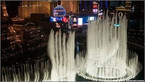 Entertainment Most of the attractions and shows on the Strip are located on hotel casino properties. The strip is well known for its lounges, showrooms, theaters and nightclubs. Some of the more popular free attractions visible from the Strip include the water fountains at Bellagio, the volcano at The Mirage and Caesars Palace’s Fall of Atlantis and Festival Fountain. The only movie theatre directly on the Strip is the 10-screen Regal Showcase Theatre in the Showcase Mall next to the MGM Grand.